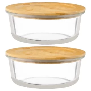 Round Glass Food Containers with Bamboo Lids.